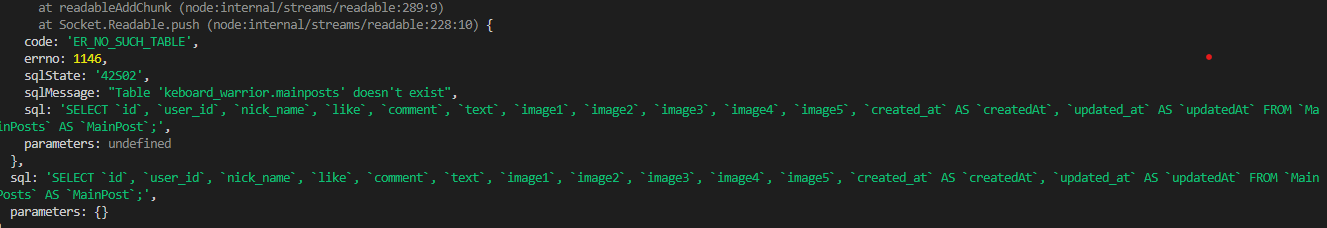 하지만 위와같이 테이블이 없다는 에러를 마주했다.