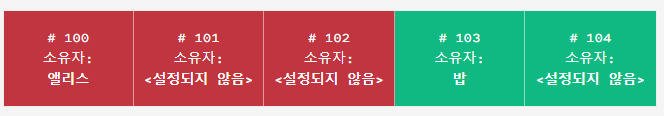100번에서 소유자 엘리스가 있으므로 102번 소유자도 엘리스가 된다.