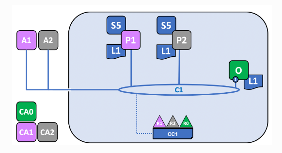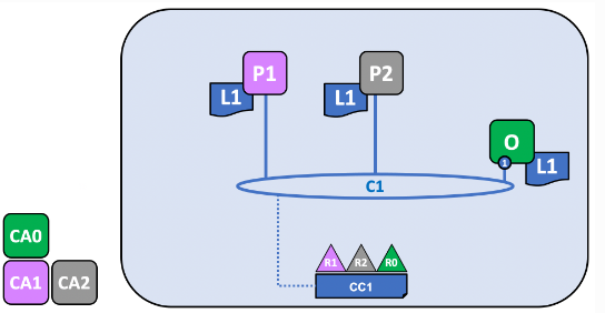 C2에 결합된 P3를 C1에 추가한다. 이렇게 하면 P3는 C1의 원장인 L1을 가져온다.