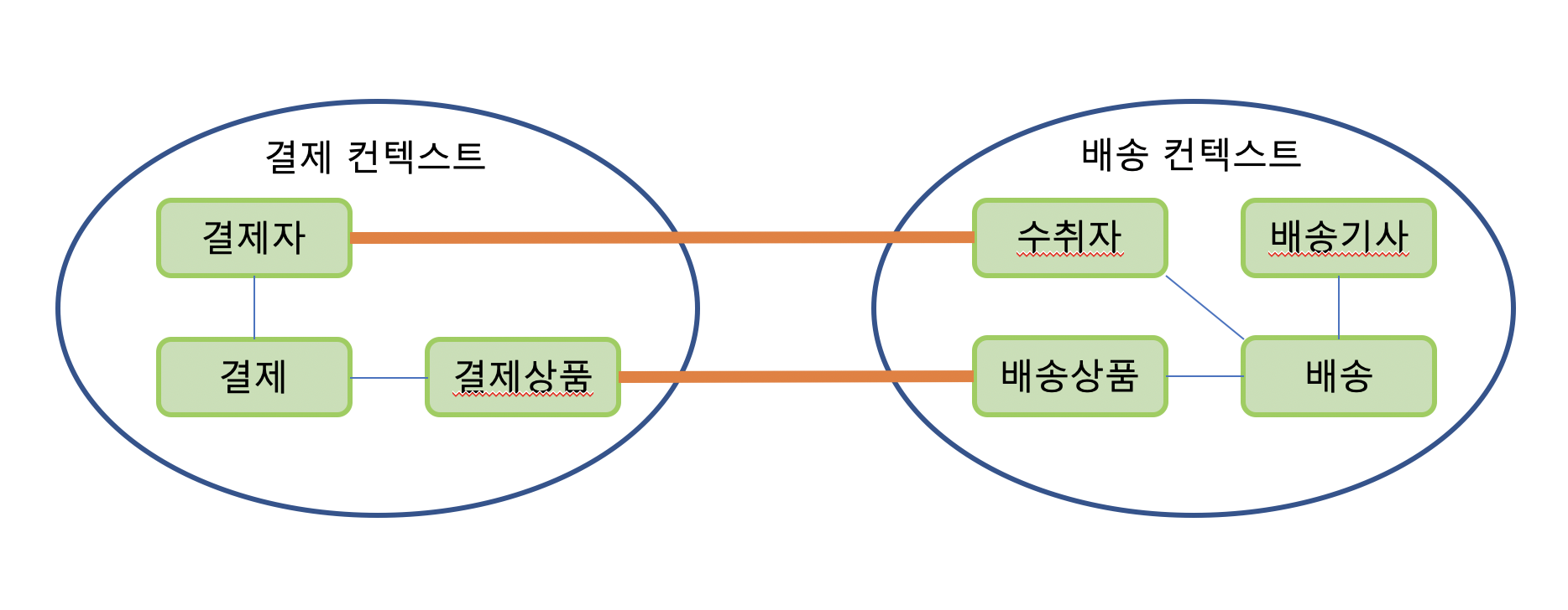 만약 1팀과 2팀이 있다면 1팀은 결제 컨텍스트 2팀은 배송 컨텍스트를 개발하며 효율적인 시간을 사용할 수 있다.