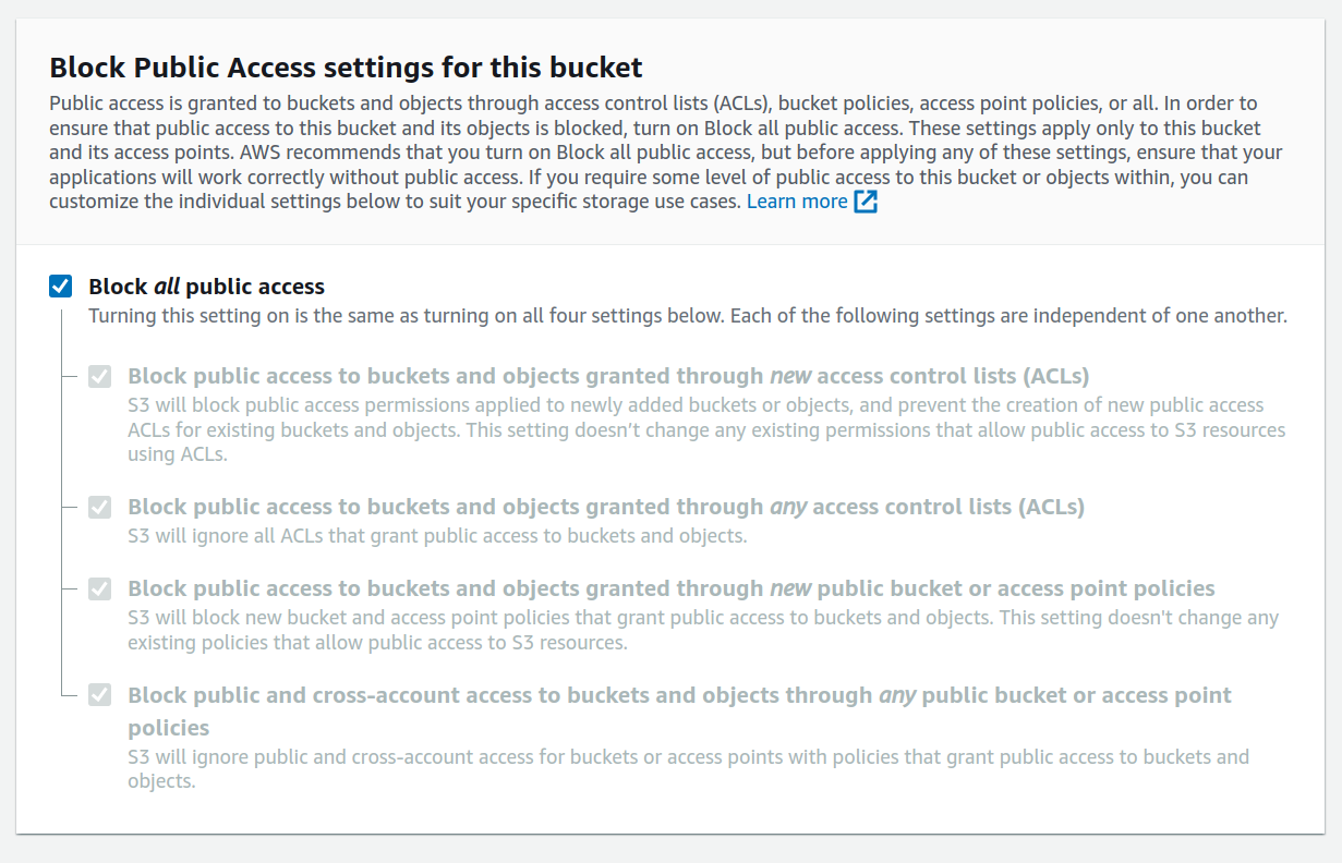 해당 부분을 구현할 때 많은 블로그들을 봤지만 대부분 public설정을 해주고 cloudfront를 연결했다.