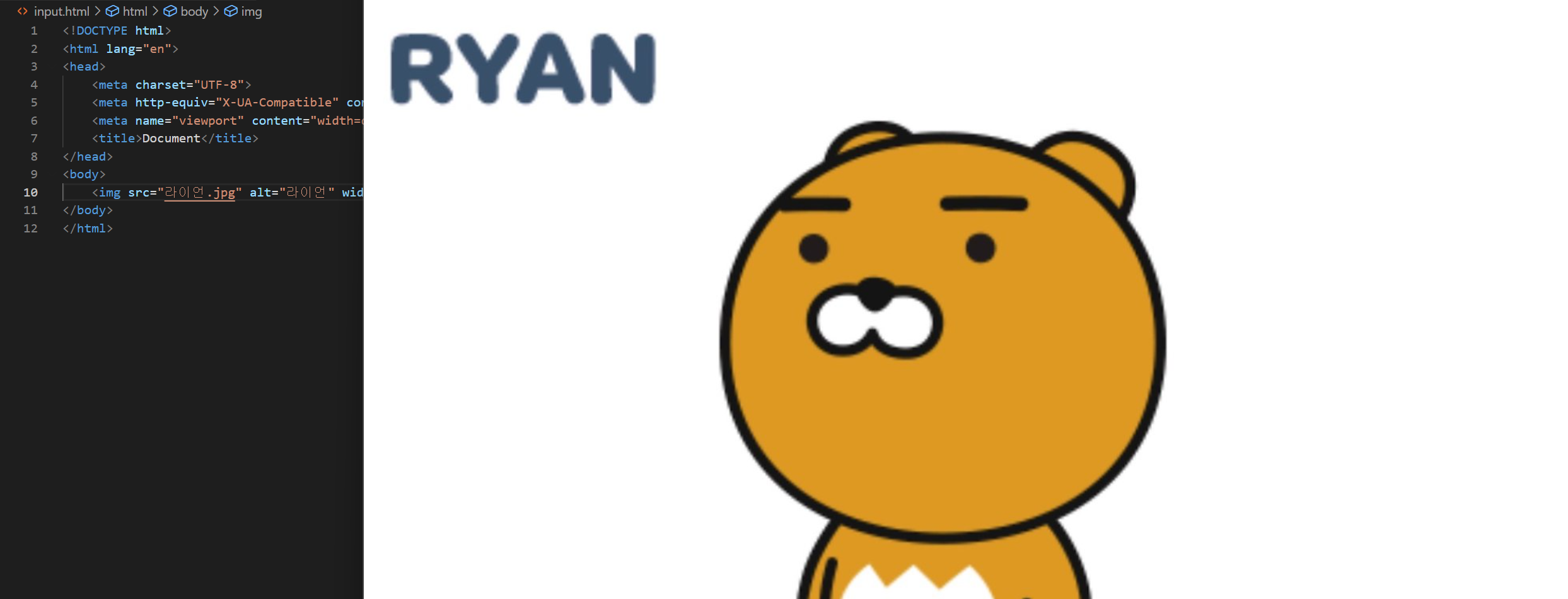 같은 폴더에 없는 경우 alt에 넣은 값이 나오는 모습