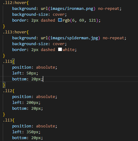 li에 float:left를 적용하여 가로로 1자를 만들어 줬고 position을 통해 포스터가 겹치지 않게끔 자리를 잡아줬다.
