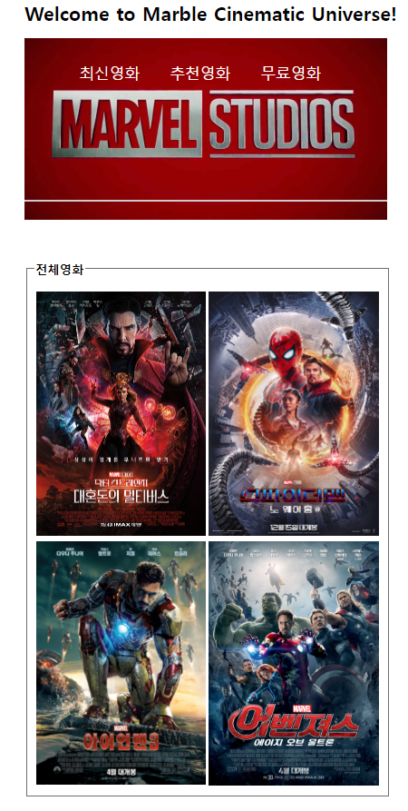 container 안에 마블스튜디오로 배경을 넣었고 background : cover; 로 다 덮고 크기를 조절했다.