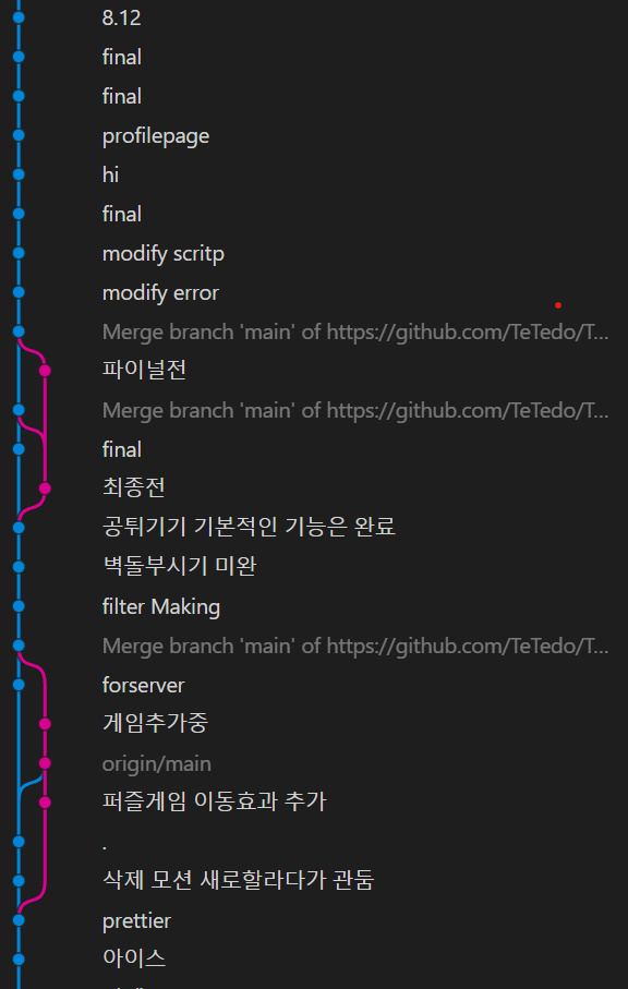 순조롭게 코딩을 하던도중 팀원과 merge를 한후 갑자기 내가 만들었던 기능들이 사라져있었다.